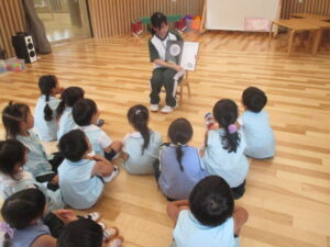 集まりの中で子どもたちへ絵本の読み聞かせも体験してもらいました。