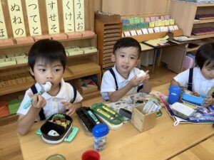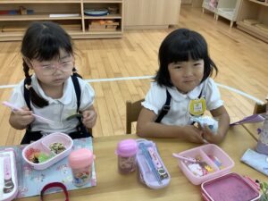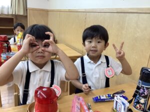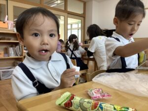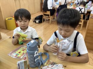 幼稚園に帰ってきてからは、お待ちかねのお弁当🍱とお菓子🍪の時間⏱
