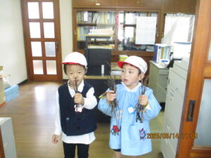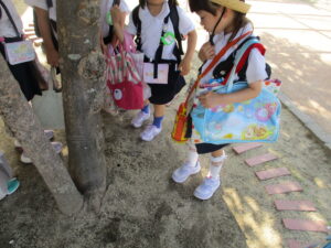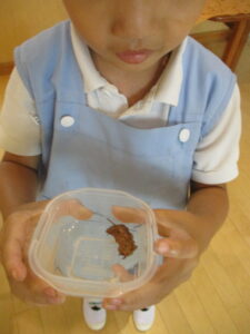 せみの抜け殻を見つけた子。大事そうにカップに入れてお部屋に持ち帰りました。