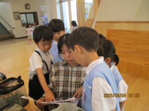 そして、集まりの時には、虫の生態や特徴についての知識をとても魅力的にみんなに紹介。