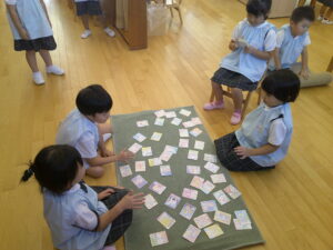 かるた遊びをしています。