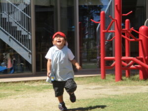 戸外で、いい顔して遊んでいますね。(*^^*)