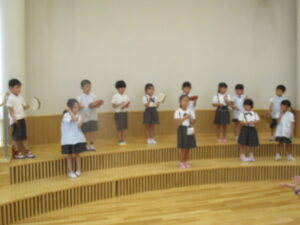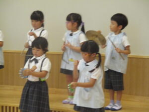 年長組・音楽会の練習をしています。