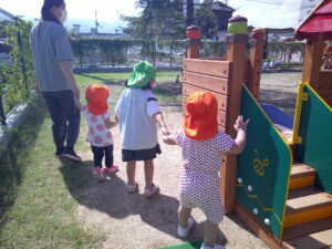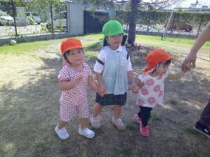 先生とお友達と手をつないでお散歩(●´ω`●)
