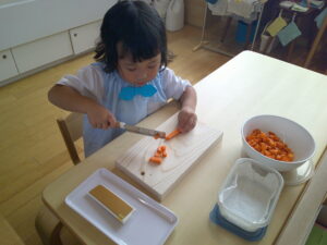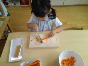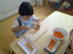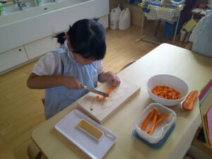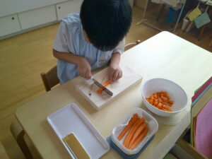 包丁でにんじん🥕を切ります!!
