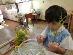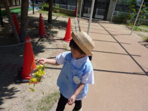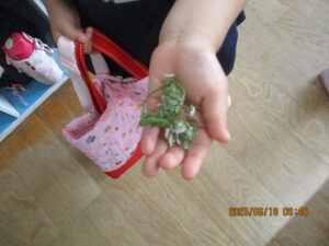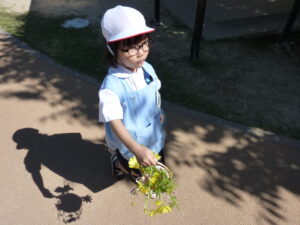 今日登園中に摘んできたお花を大事に大事に握ってきた様子。