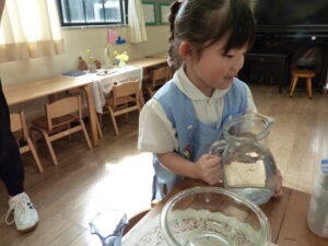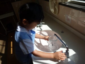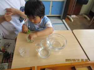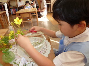 またある日、連日、花の水切りに夢中になっていた子。