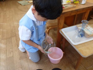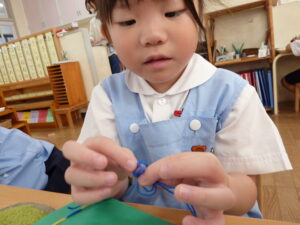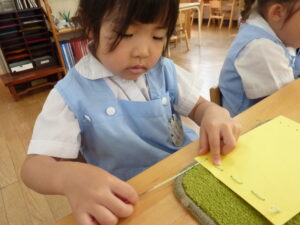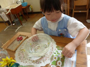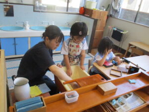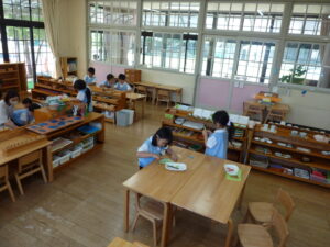 モンテッソーリ教育を実践する当園では、子どもたちがいつでも手に取れるような