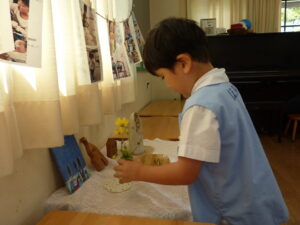 ままごとではない本物の活動。子どもの手の大きさに合った本物の道具。