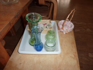 様々な花びんの中から好きな花びんを選び、お花を生けます。