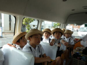 バスの中では、「ちょっとドキドキする。」「チラシ渡すの楽しみ!!」と初めての体験に様々な思いを巡らせます。