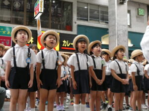 「ぼくたち、わたしたちは、街を歩いている人たちや、車に乗っている人たちに、交通の決まりを守って、交通事故がなくなるように、お願いしながら、最後まで元気よく行進します。」