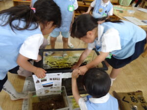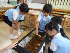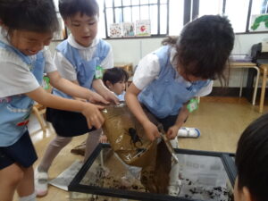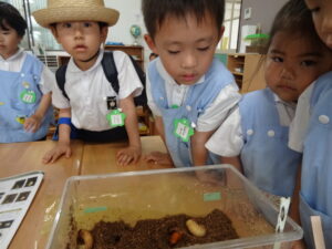 これまで毎日毎日観察してきたかぶとむしに愛着をもっていた子ども達、成長をとても喜んでいました。