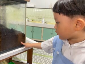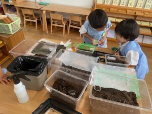 「違うよ!これさなぎ、土の上にいたらだめなんだよ!」