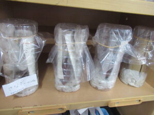 お部屋の片隅にさなぎの寝床がズラリと並びました。