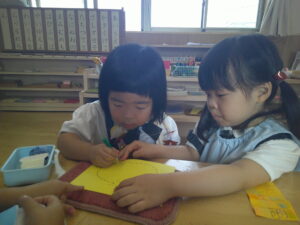 お友達と一緒に縫いさし🌸