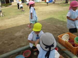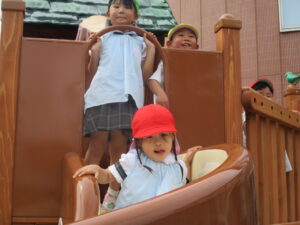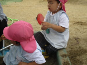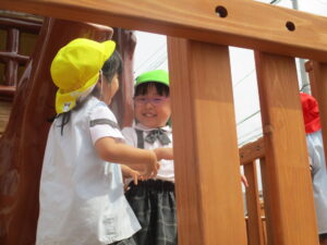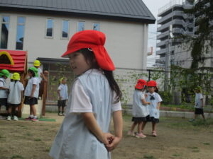 園庭で遊びます。