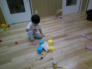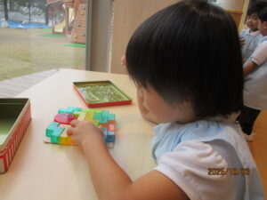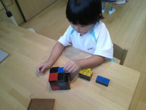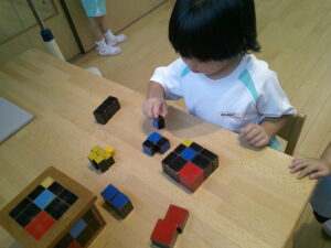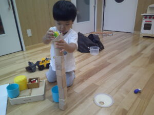 一緒に積み木を積み上げます△▢