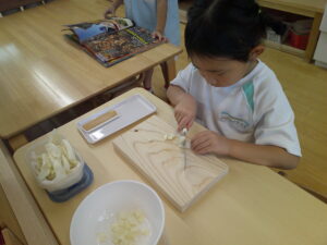 キャベツを切っています。🔪