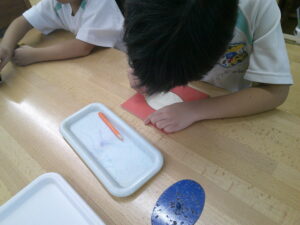 のりを丁寧に貼ります(●´ω`●)
