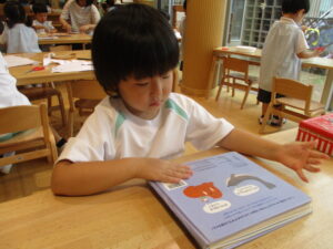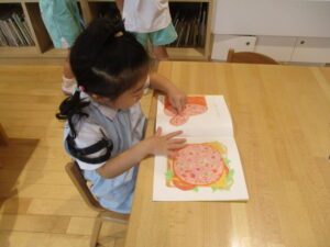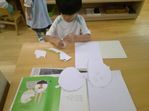 絵本を見ながら切ります(●´ω`●)