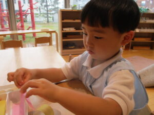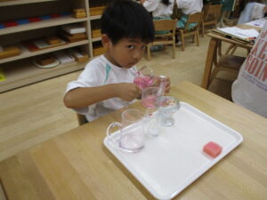 線のところまで色水を分け移します。
