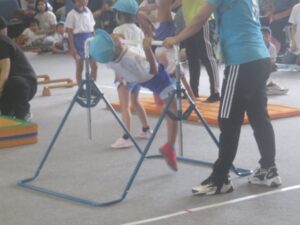S棒やお手玉、逆立ち、前回りなど一生懸命頑張りました!