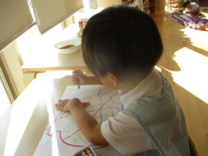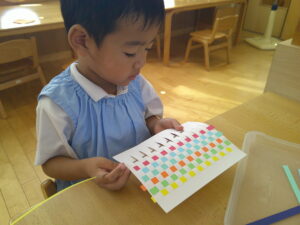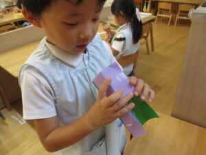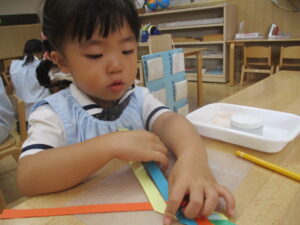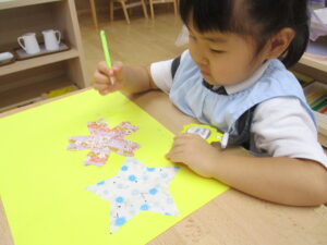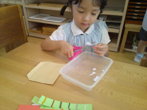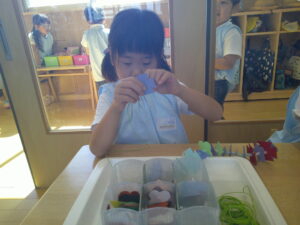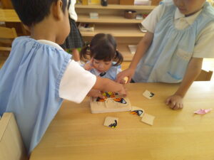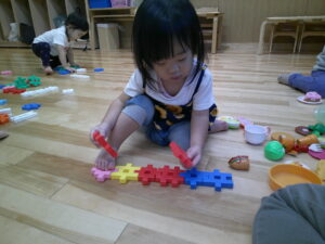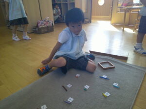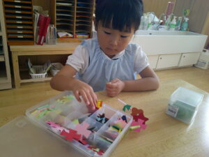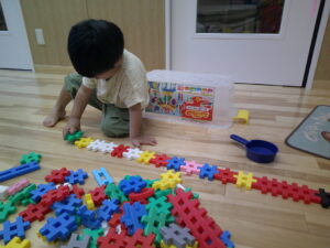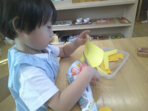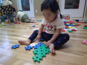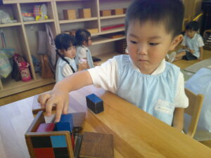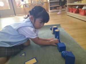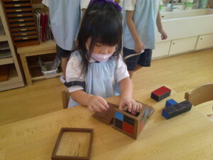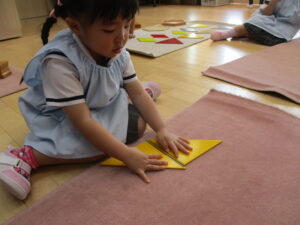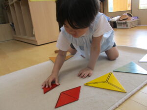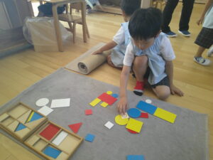 ロジック遊び:形で遊び、大きい小さい〇△▢を知ります。