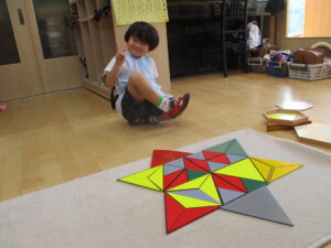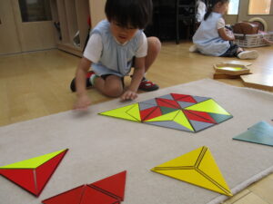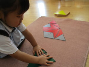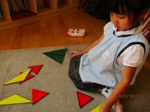 形の構成:いくつかの三角形を組み合わせることによって、新しい形をつくる。