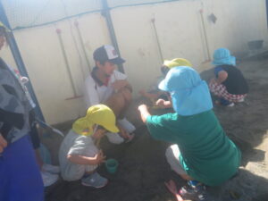一緒にサッカーをしたり砂あそびをしたり、お弁当を食べる約束をしたりと
