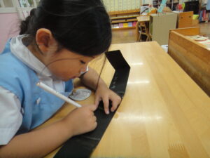 それから毎日、黒い画用紙に昨日見たお月様の形を描き込んでいます。