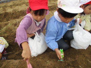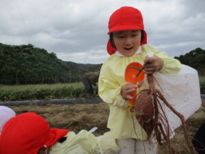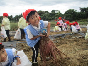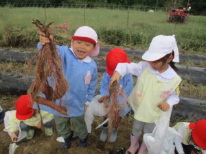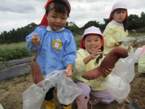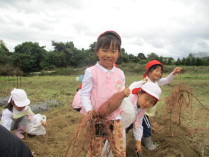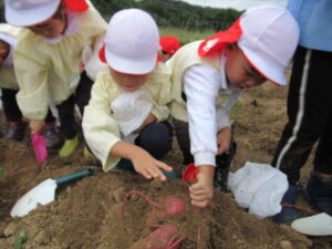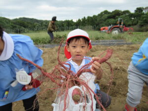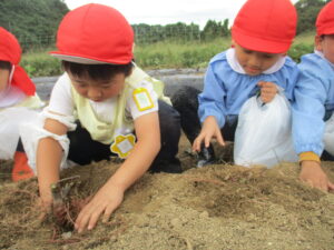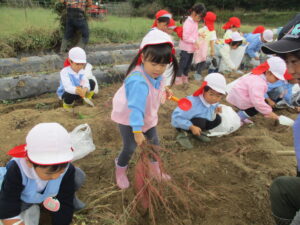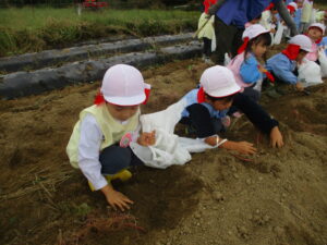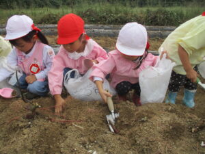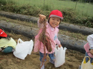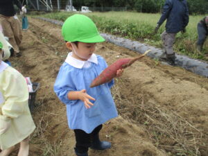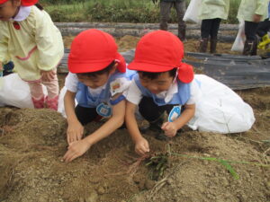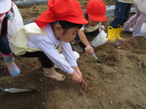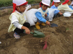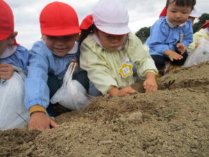 2歳児クラスのつぼみ組さんも初めてのおいもほり体験に嬉しそうです。