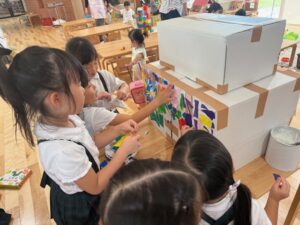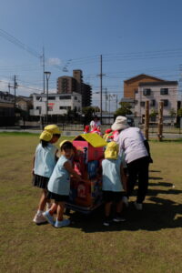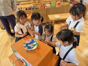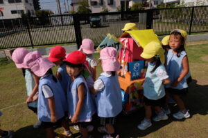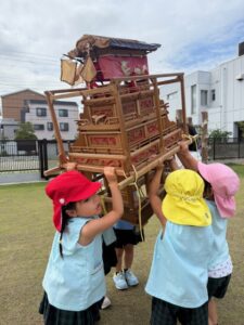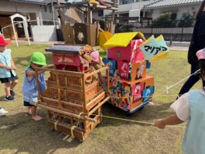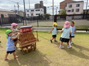 お祭り明けの幼稚園では、子どもたちから「だんじり見に行った!」「屋台で綿菓子食べたり、アイス食べた!」などそれぞれの楽しかったお祭りの様子がみうけられました。