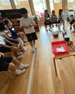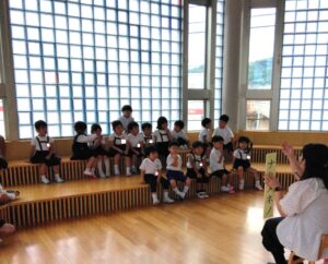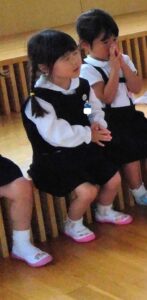 一方、年少児は毎週月曜日の帰りの会にホールへ集まり、