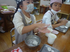♬ まるめて たたいて ♬