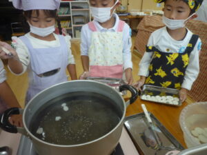 白玉だんごをゆでます。