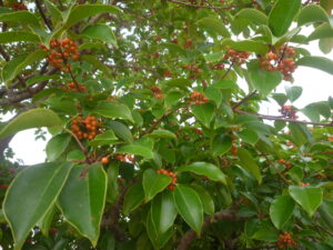 園庭のモチノキが薄いオレンジ色