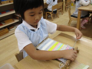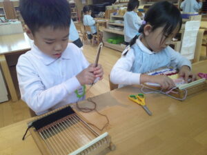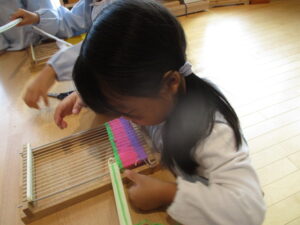 好きな毛糸で丁寧に織っています(●´ω`●)