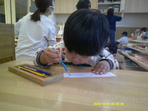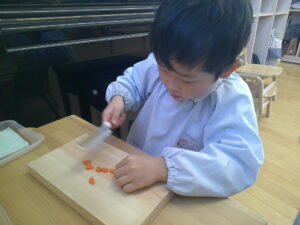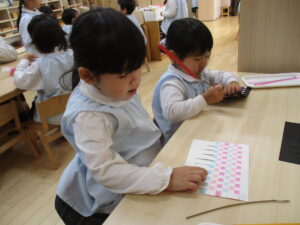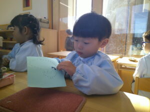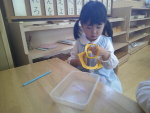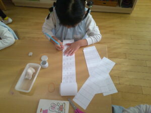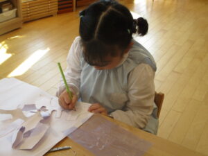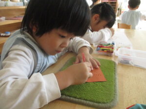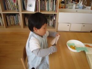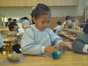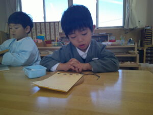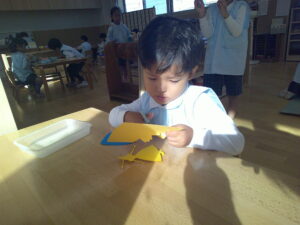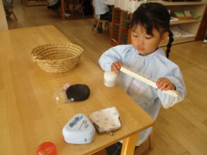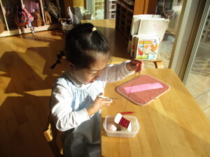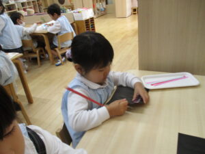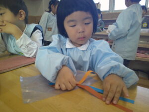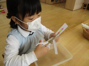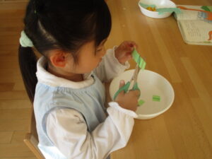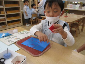 縫いさしの糸の長さを自分で決めてハサミできります。