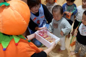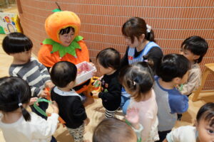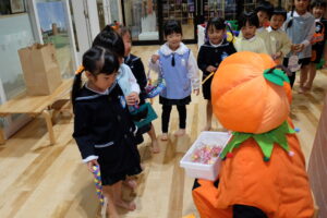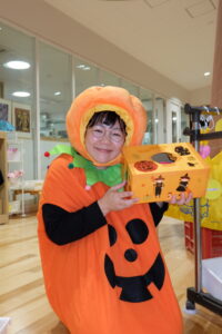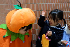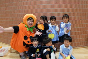 子どもたちは朝から、「今日は友世先生がかぼちゃになるんでしょ!」「お菓子くれなきゃ