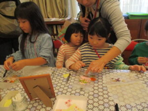 今年度も児童館のブースがあり、帽子やスノードームなど家族の人や友達と楽しみながら