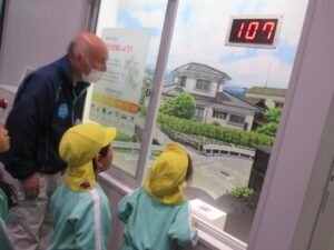 前日に公共交通機関内でのマナーや防災センターについて話をしてみんなで約束を確認しました。