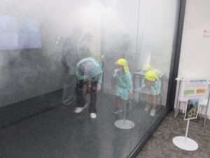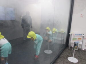 火事を知らせる大声体験や煙の中の避難体験をしたりしました。
