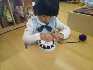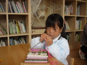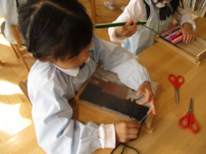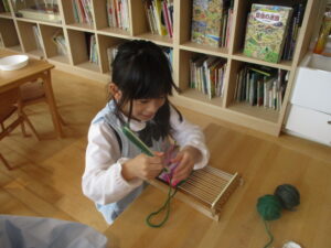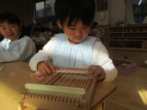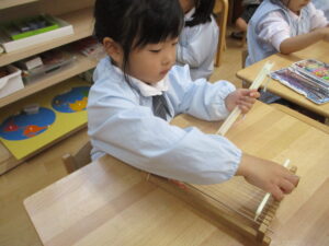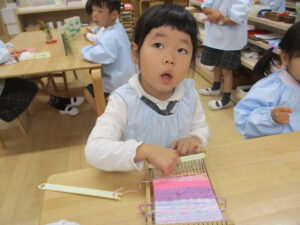 年中組さん、はたおり、頑張っています