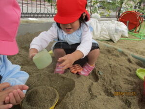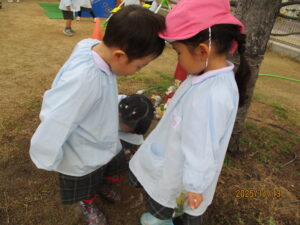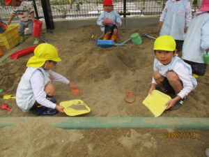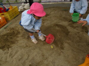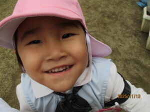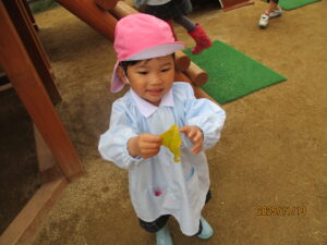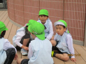 朝は小雨が降っていましたが、登園時間には曇り空。