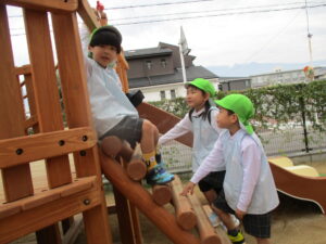 今日も子どもたちは元気いっぱい、外で体を動かして遊んでいました。