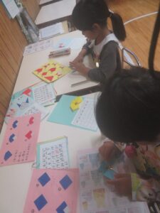 その月のイメージを膨らませて思い思いの折り紙を作ります。