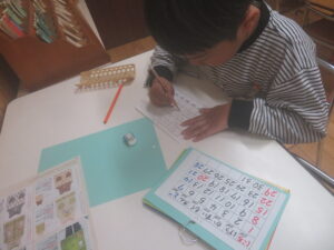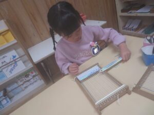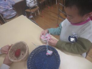 お部屋では、毛糸を使ったお仕事が始まりました。