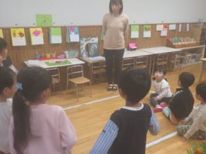 年中・年少児は、クリスマスお遊戯会でダンスをします。