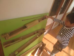 体操講師の矢野先生がどんぐりコロコロマシーンを作ってくれました。